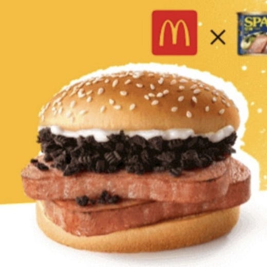 Here is the key detail in the Spam burger: If you look closely in the promotional photo, there’s no creme filling involved.