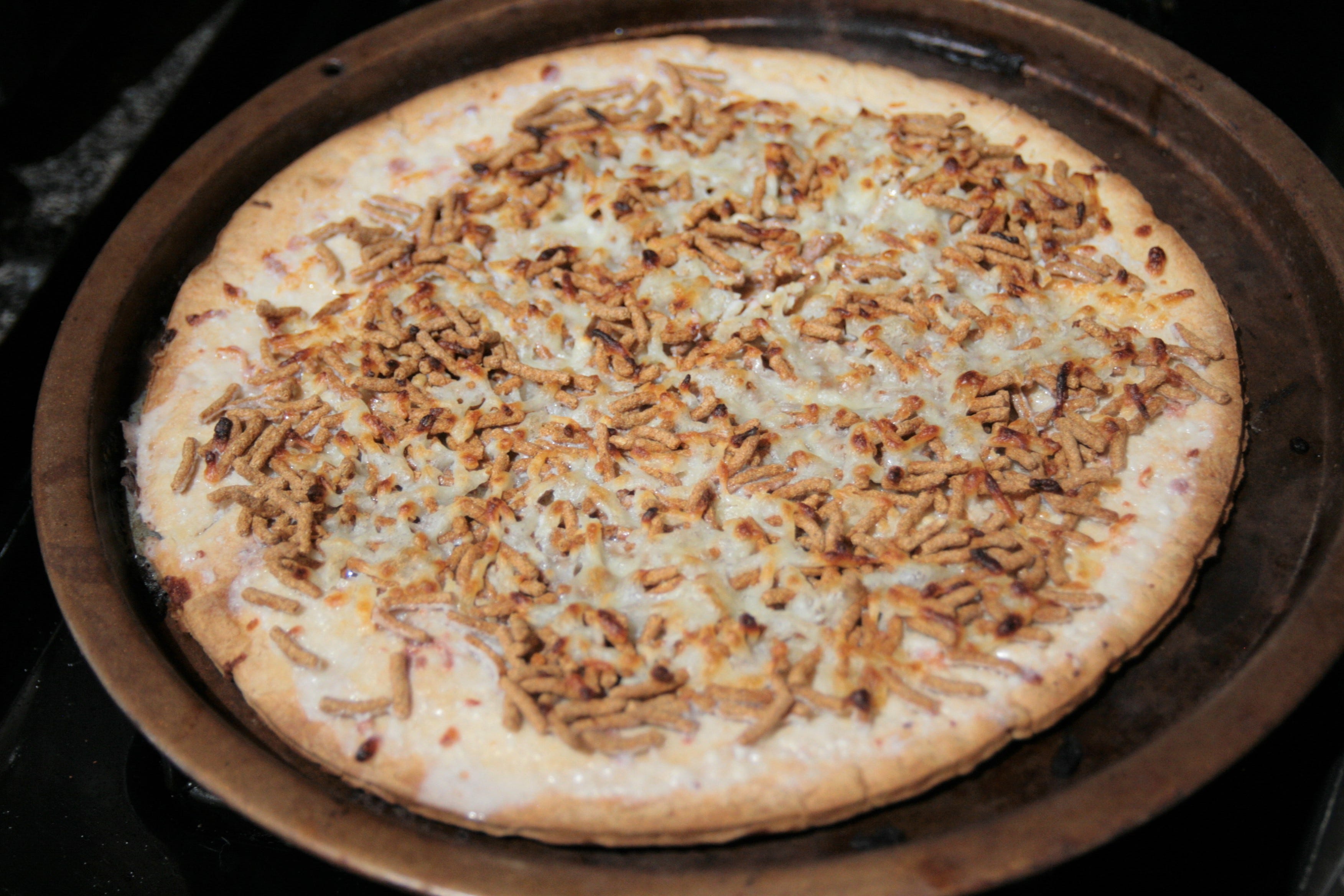 Do you want to know something? This pizza was way better than the Froot Loops one. I can’t say it was good, but it was definitely better. What I appreciated about it, and hated about it, is how much chewing it took to take down a bite. Imagine yourself eating dry mulch with cheese on top, and congratulations, you were in my kitchen with me today. At least I got an added benefit out of it, compared to that Froot Loops pizza, and that will come tomorrow.